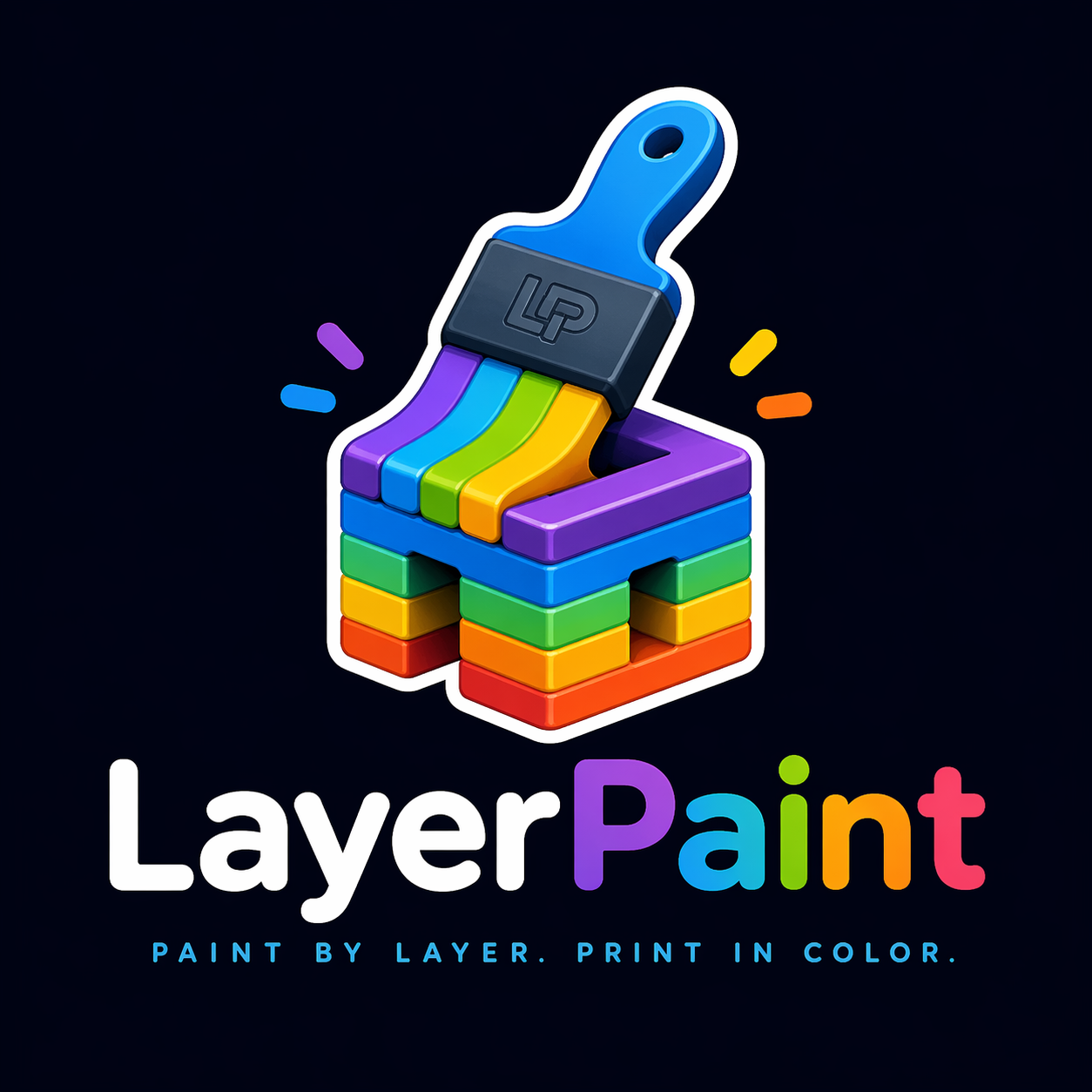 Layerpaint paints per-triangle colors on STL, OBJ, and 3MF meshes — then exports a Standard 3MF your slicer already understands. No install, no upload, no subscription.